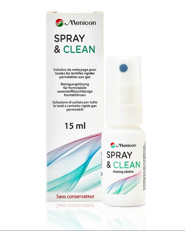 Menicon Spray&Clean to specjalny płyn do czyszczenia sztywnych soczewek kontaktowych. Dzięki temu produktowi łatwo usuniesz wszelkie nagromadzone osady tłuszczowe z soczewki, a jednocześnie zapewnisz sobie wygodę jej użytkowania. Spray&Clean to roztwór, który nie zawiera konserwantów, a więc jest bezpieczny dla Twoich oczu. Produkt ten należy stosować w połączeniu z płynem MeniCare Plus.